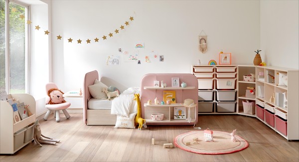 Scoop 系列以冰淇淋一般充满甜蜜气息的氛围为概念,营造出温暖感,引导孩童养成独立睡觉的习惯,适合3~6岁的儿童,圆角设计的隔板及护栏让小孩不会因为碰撞而受伤,多样化的层板隔间不但能提供充足收纳,还能让小孩自由妆点自己的空间。