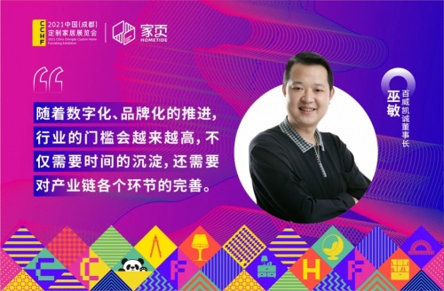 巫敏在论坛上讲述了百威成立后面临过的转型选择,从最早的单品到现在的全屋定制,再到下一步的整装,实际上每一步都是非常艰难的升级,内控体系、制造等各个环节都需要时间去沉淀。
