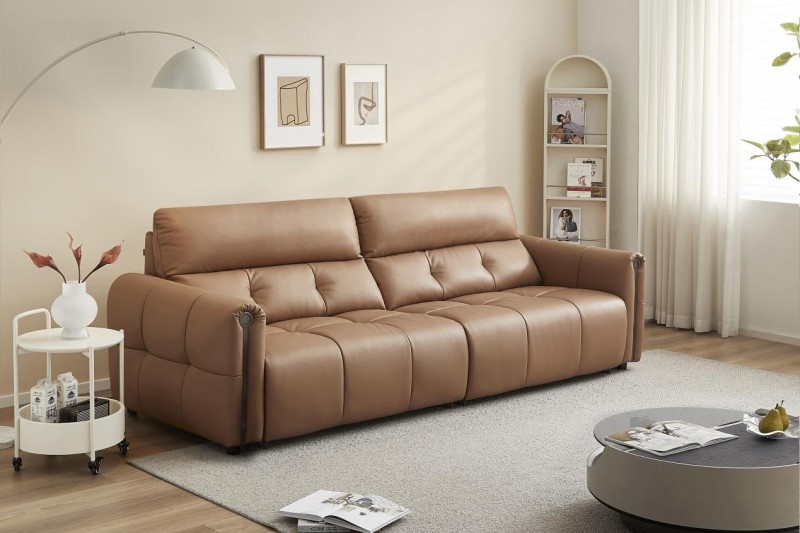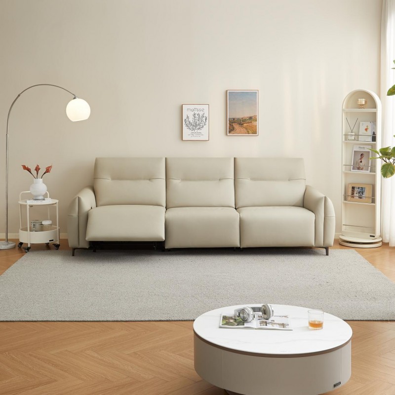 双色双功能,适配多元放松需求。贝母米白电动单人位,电动抬脚变舒适妃位;功能架向前推进,0靠墙设计节约空间;10区科学承托,110°~160°随心调节,慵懒生活一键开启。麦麸棕电动平推双躺位,直排沙发、舒适妃位、沙发床随心切换,包容各种宅家姿势。甄选1.4mm加厚进口头层牛皮,柔韧耐磨且亲肤细腻,质感与耐用性兼具。三层恒压高弹海绵复合分压,回弹性强,久坐久躺都不累。