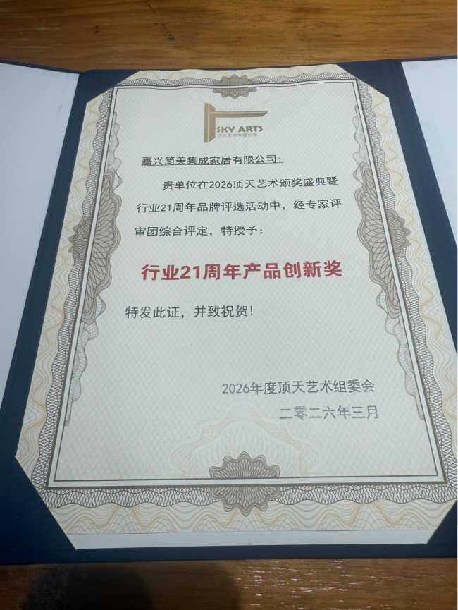 2026年3月,在备受瞩目的“顶天艺术奖”颁奖盛典上,简美筑家一举斩获“行业21周年产品创新奖”。这一奖项并非偶然——它是中国顶墙行业21年发展历程中,对产品原创能力最高规格的认可之一。