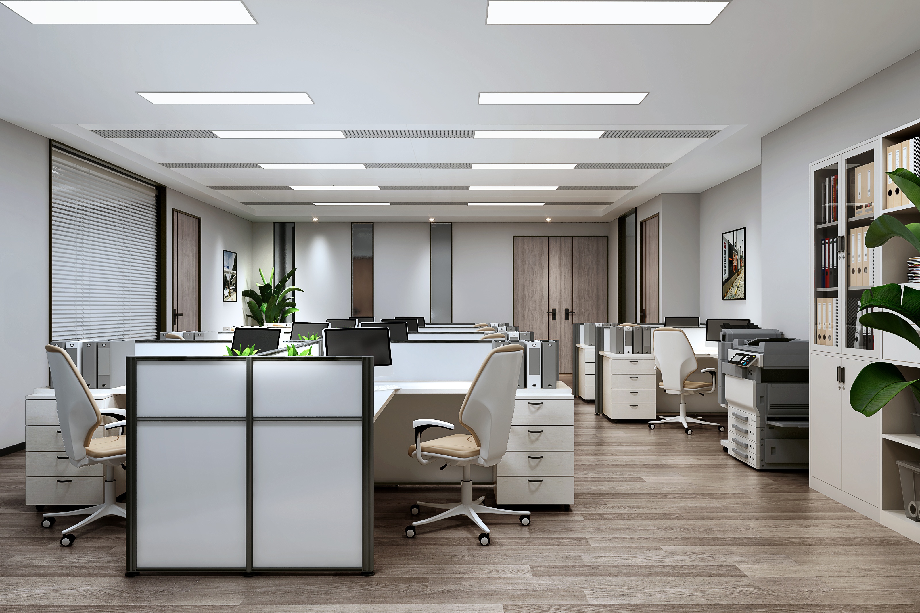 · 开放式办公区设计:以高效动线为精髓,搭配人性化工位布局、隔音降噪设计与绿植软装,打造通透、舒适、高效的员工办公环境,提升团队协作效率;