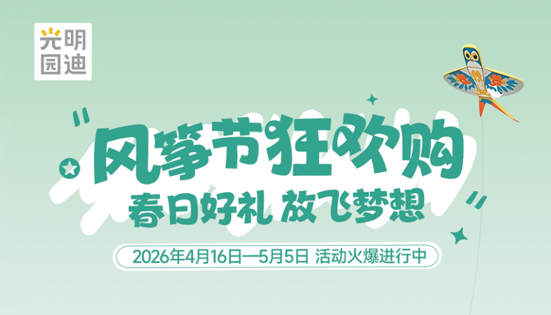 春风送暖,万物生长。为丰富青少年春日文化生活,传递健康成长与科学学习理念,光明园迪于 2026 年 4 月至 5 月举办春季“风筝节狂欢购”主题活动,面向广大亲子家庭退出多重福利活动与互动体验,倡导在轻松愉悦的氛围中感受成长乐趣的同时,倡导科学育儿与健康学习方式,为青少年健康成长保驾护航。