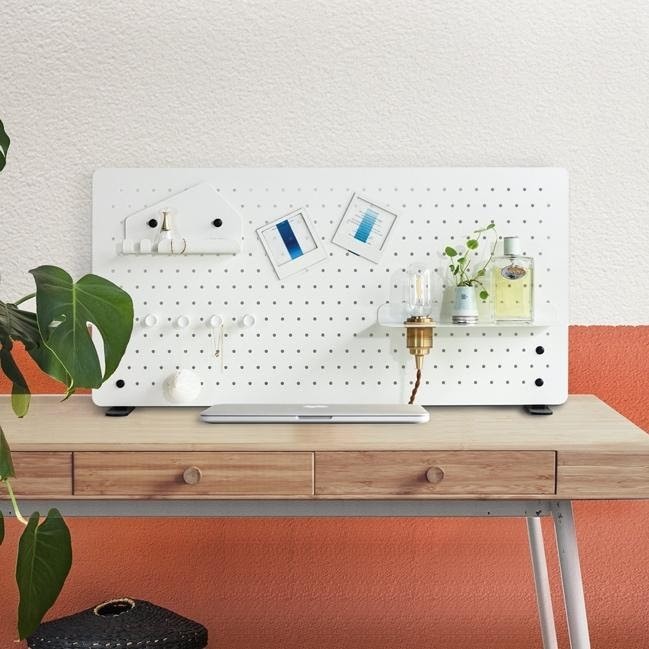 想要好好整理杂乱的桌面,可以用看看这款金属洞洞板,它以金属材质和简约素色打造出置物架、收纳盒、挂勾,可以随意自由的摆放,好玩又有趣。