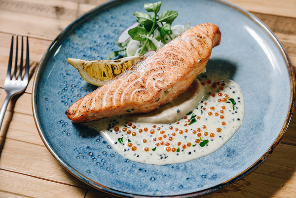 ▲白酒奶油鱼卵酱嫩煎鲑鱼,售价460元。