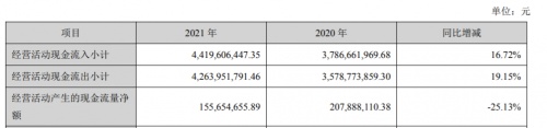 东易日盛年报(002713)近日发布2021年度报告,报告期内公司实现经营活动现金流入小计4,419,606,447.35,经营活动现金流出小计4,263,951,791.46,经营活动产生的现金流量净额 155,654,655.89元。