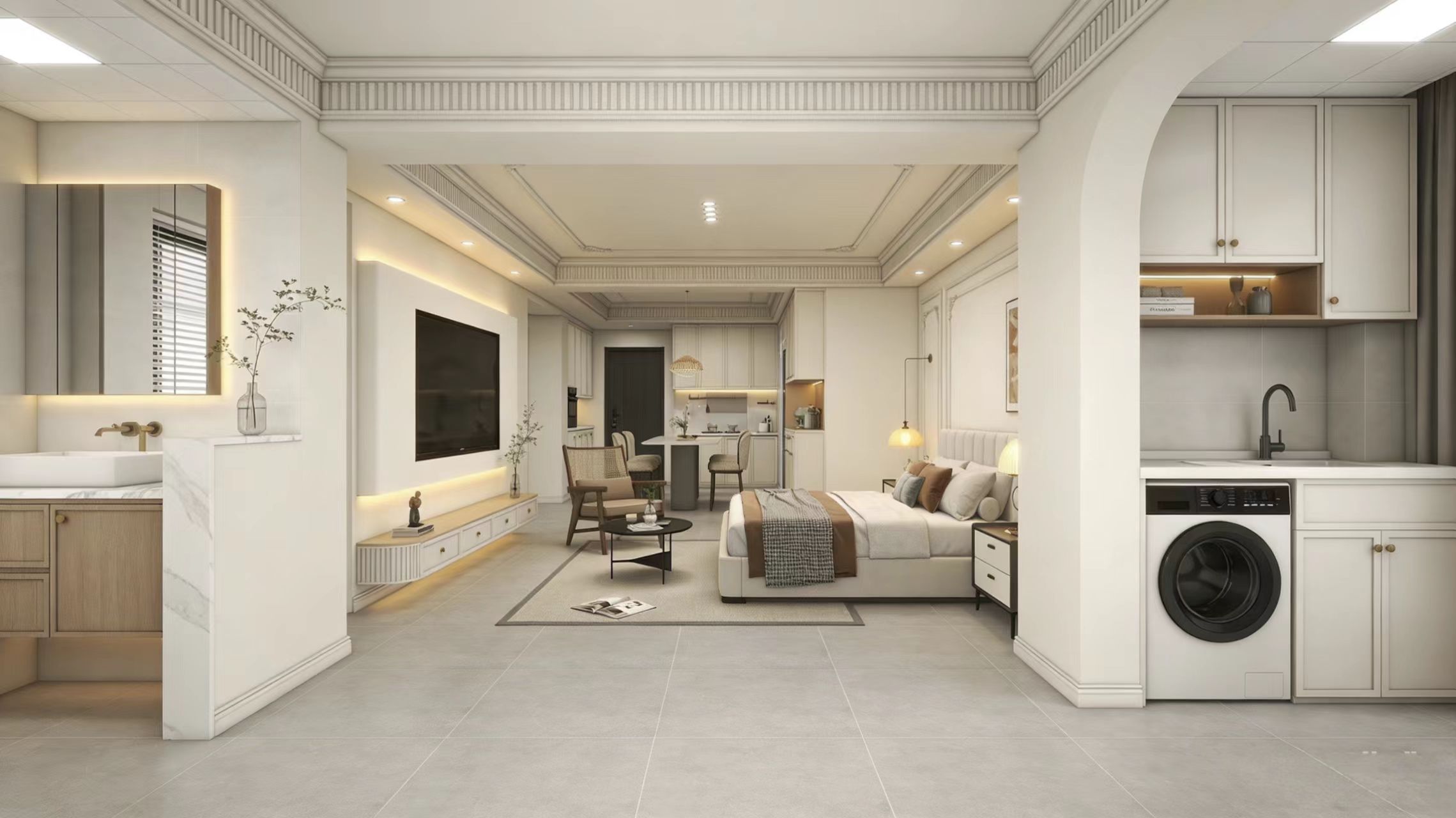 模块化智能整装的价值在于其灵活性:基础装修模块通过标准化水电与墙地面处理降低人为误差;空间功能模块针对厨卫等特殊空间提供快速装配单元;智能中控模块则支持灵活配置智能硬件,满足不同家庭的个性化需求。更重要的是,该系统支持后期功能模块单独升级,明显降低二次改造的时间与资金成本。